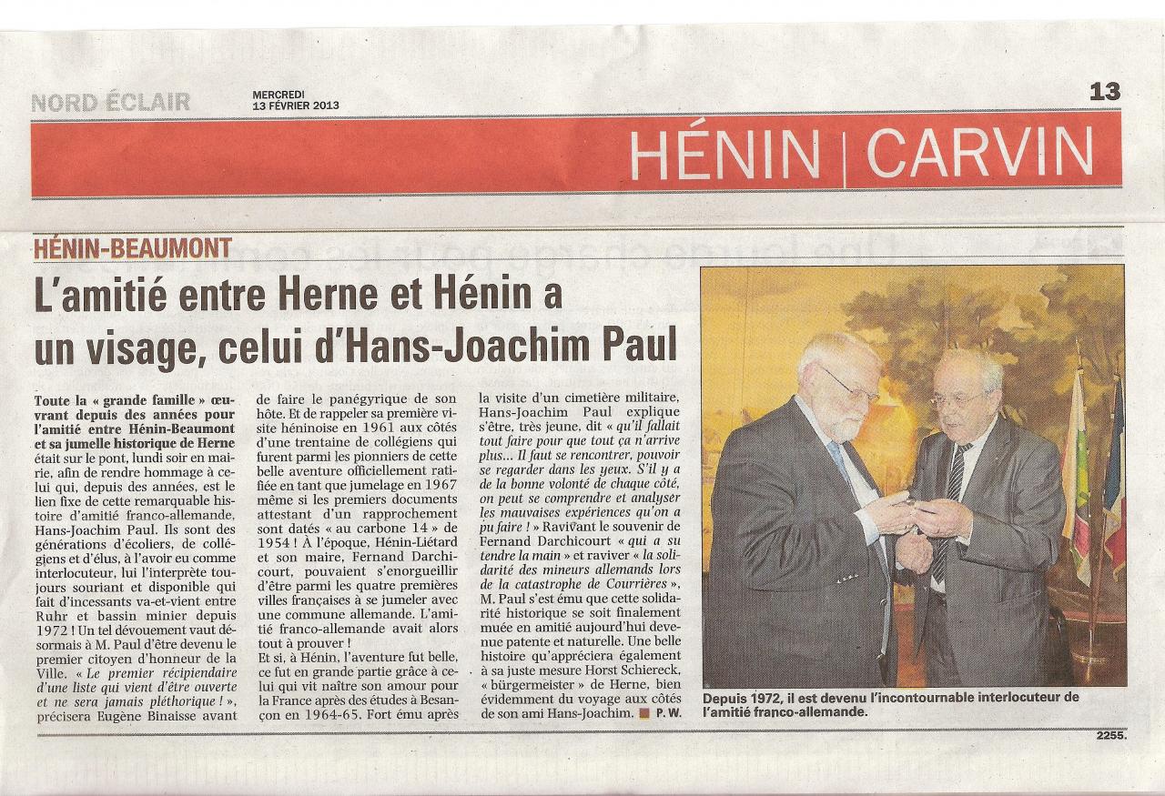 Article paru le 13 février 2013 dans La Voix du Nord et Nord Eclair